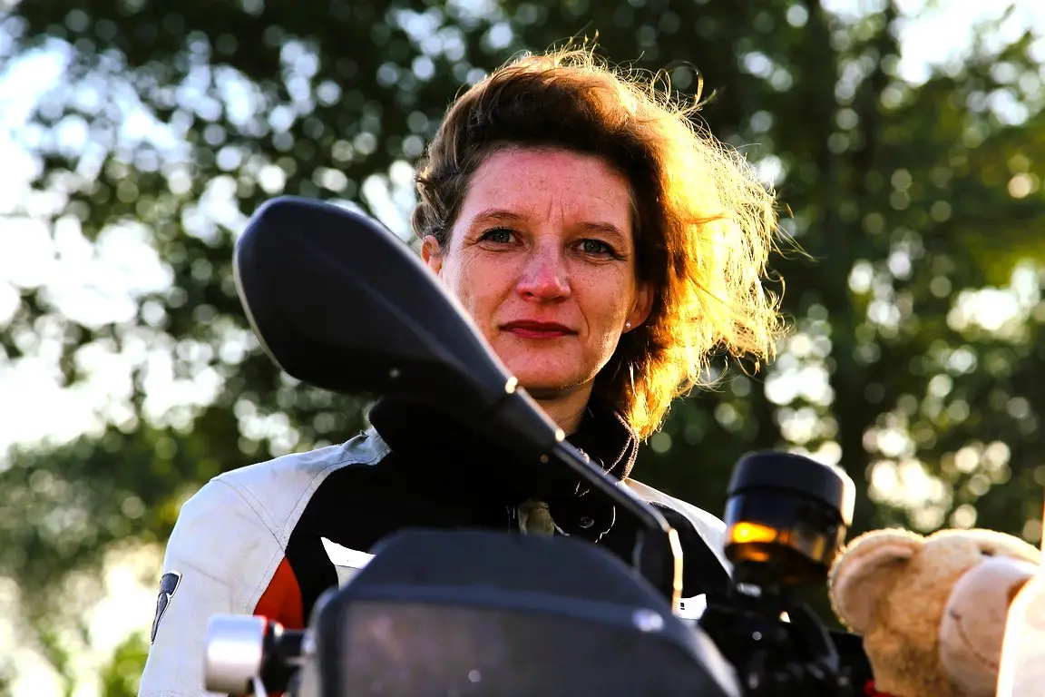 Frau (Eva Strehler) auf Motorrad